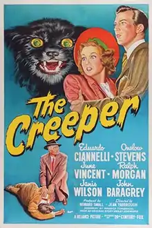 The Creeper was distributed theatrically by Twentieth Century-Fox Film Corp. in September 1948.[1] According to a March 1949 Hollywood Reporter article, radio writer Joseph Ruscoll sued Edward Small for using the title of Ruscoll's radio show, The Creeper for the film.[1] The suit was settled for an undisclosed sum.[1]