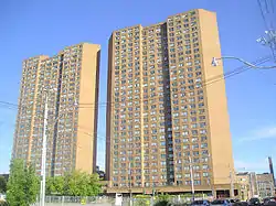 The enclosed 7,900 square metre (85,000 square foot) mall at the base of the twin apartment towers has more than 40 stores and services, composed of small independent businesses and services. For many years, until the late 1990s, the mall had a regular-size grocery store on its lower level, initially a Food City and subsequently an IGA store. In addition, there used to be a Boots Drug Store in the mall.