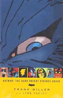![]() Cover of the trade paperback Batman: The Dark Knight Strikes Again. Cover design by Chip Kidd. | |