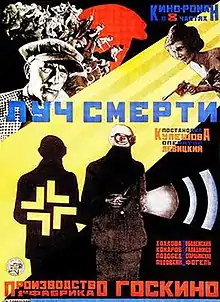 The Death Ray (Russian: Луч смерти, romanized: Luch smerti) is a 1925 Soviet science fiction film directed by Lev Kuleshov.[1][2] The first and last reels of the film have been lost. This film ran at 2 hours, 5 minutes, making this one of the earliest full length science fiction films. Despite the fact that many sources claim the inspiration for the film to be the novel The Garin Death Ray by Aleksei Tolstoy, this is not the case. It is impossible, since the book was published two years after the film, in 1927.[3] Furthermore, the film has many similarities with a book by Valentin Kataev, called Lord of Iron, published in 1924.[4] Moreover, the theme of death rays was very popular at the time because of the 1923 claim of British inventor Harry Grindell Matthews to have created a "death ray".