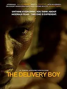The Delivery Boy is a thriller written and directed by Adekunle Adejuyigbe, a Nigerian film maker. The film stars Jammal Ibrahim, Jemima Osunde, Charles Etubiebi, Kehinde Fasuyi and a host of others. The Delivery Boy screened at film festivals including African Film Festival New York,[1] Lights, Camera, Africa,[2] Nollywood Week Paris,[3] the Africa International Film Festival (AFRIFF), Lake International PanAfrican Film Festival, Real Time International Film festival (RTF), and the 9th Jagran Film Festival. It has won awards such as "The Best Nigerian Film Award" at the Africa International Film Festival and "Best Supporting Actor" at the Real Time International Film Festival (RTF) since its release in 2018.[4]
