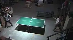 Back at the Scranton, Pennsylvania branch of Dunder Mifflin, Jim Halpert (John Krasinski) repeatedly loses to warehouse foreman Darryl Philbin (Craig Robinson) at ping pong, prompting Darryl's girlfriend Kelly Kapoor (Mindy Kaling) to gloat to Jim's girlfriend Pam Beesly (Jenna Fischer) over her boyfriend's superior skills. Unable to tolerate Kelly's trash-talk, Pam builds a makeshift ping pong table in the conference room for Jim to practice against other office employees. Throughout the day, Jim practices against his coworkers, eventually discovering Dwight Schrute's (Rainn Wilson) prowess at the game. When Jim and Darryl have a rematch, Jim again loses to Darryl. Fed up with Kelly's continued taunting, Pam challenges her to a game of ping pong, but the two play poorly. Jim and Darryl quickly get bored of watching them and decide to play ping pong in the conference room. The episode concludes with Dwight playing a high-intensity game of ping pong against his cousin Mose Schrute (Michael Schur), with the two at an apparent stalemate.