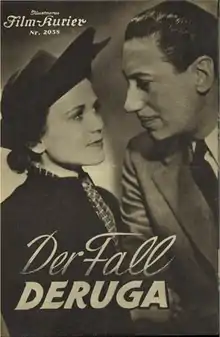 The Deruga Case (German: Der Fall Deruga) is a 1938 German crime drama film directed by Fritz Peter Buch and starring Willy Birgel, Geraldine Katt and Dagny Servaes.[1] It is based on the 1917 novel of the same title by Ricarda Huch. It was shot at the Babelsberg Studios in Potsdam.[2] The film's sets were designed by the art directors Wilhelm Depenau and Ludwig Reiber.