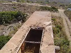 The building has a simple and modest vernacular architecture,[11] with slit windows, that function as ventilators, and waterspouts. It has no inscriptions or symbols to shed further information about its use apart from Roman numerals that were inscribed when it was converted to a farmhouse. These are found on the walls and woods, and record the sale of different types of vegetables by farmers.[5] The features of the building are examples of Maltese traditional architecture that include roofs built with limestone slabs and animal feeding mangers. Despite the conversion to a farmhouse, the building clearly does not look like it was originally meant to be one, as it is not a traditional Maltese farmhouse.[5] This and the position of the mangers prove that the building was built for horses. These characteristics may suggest that the building may have been a cow farm. The high roof of one of the buildings still prove that it is unlikely it was originally a cow farm, but it may be speculative to say that at one point it had been so.[5][6][8]
