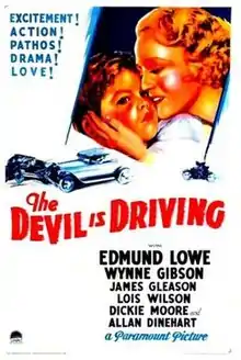 The Devil is Driving is a 1932 American pre-Code film directed by Benjamin Stoloff and starring Edmund Lowe. The film's title was typical of the sensationalistic titles of many pre-Code films.[1] It runs a mere 63 minutes, and like many Pre-Code movies deals openly with issues like sex and violence.[2] Lowe plays a chronic gambler who drifts into a life of crime.[3] The New York Times gave the film a mixed review upon its release.[4]