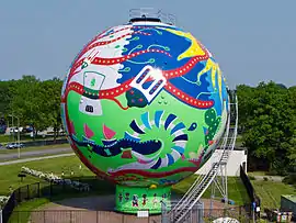 The Dot is a work of art in Emmen (Netherlands). It is designed and painted by art collective the toyists. The Dot is a former gas container of which only two still exist in Europe. The toyists painted this monumental industrial object and linked it with the theme of Live with energy.