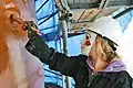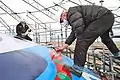 The transformation of the former (blue) gas container took several months to complete, from mid July 2009 until the unveiling on June 4 in 2010, with a winter break of two months. The project had 17 toyists from 7 different countries working for 6000 hours, they painted an area of 1250 m2 in multiple layers.[2]