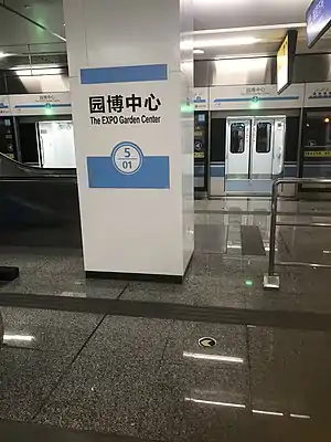 The EXPO Garden Center is a station on Line 5 of Chongqing Rail Transit[1] in Chongqing Municipality, China. It is located in Yubei District and opened in 2017.[2]