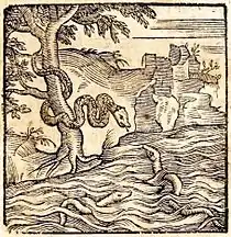 The fable of the Eel and the Snake was originated by Laurentius Abstemius in his Hecatomythium (1490).[1] Versions of it appeared in several European languages afterwards and in collections associated with Aesop’s Fables.