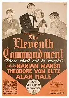The Eleventh Commandment is a 1933 American pre-Code drama film directed by George Melford and starring Marian Marsh, Theodore von Eltz and Alan Hale. It is based on a play by Brandon Fleming.[1] The story had previously been made into a 1924 British silent film.
