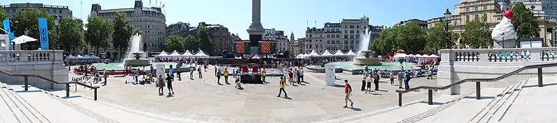 The End (stylised in capital letters) was a sculpture by British artist Heather Phillipson, which was installed on the fourth plinth at Trafalgar Square, London, from 2020 to 2022.[1] The sculpture depicted a gigantic dollop of melting whipped cream, topped with a cherry, with a fly and a drone scaling its surface.[2][3] The drone was fitted with a camera, which sent a live feed of the surrounding area to a dedicated website.[4][2] Standing 9.4 m, or nearly 31 feet, in height, the sculpture was the tallest installation to date as part of the Mayor of London's Fourth Plinth Programme, which features a rolling commission of public artworks.[5]