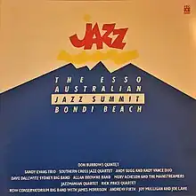 The Esso Australian Jazz Summit was held on Saturday 22 February 1986 at Sydney's Bondi Beach. The Summit had 13 acts set to play but the show wash rained out after only 10 had performed.[1] Don Burrows Quintet, Sandy Evans Trio, Southern Cross Jazz Quartet, Andy Sugg and Andy Vance Duo, Dave Dallwitz Sydney Big Band, Allan Browne Band, Merve Acheson and the Mainstreamers, Jazzmanian Quartet, Rick Price Quartet and NSW Conservatorium Big Band all performed. Nova Dreams, Schmoe and Co and the Bernie McGann Quartet were listed did not get to play.[2]