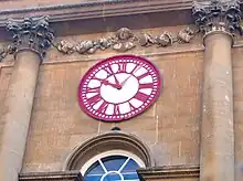 The clock was first installed in 1822. A second minute hand was later added to show the time in London as well as the local time in Bristol;[17] the red minute hand shows Bristol time and the pink minute hand shows Greenwich Mean Time . This became necessary following the arrival of the railways, which required a standardised time for timetabling around the country, known as railway time; Bristol officially adopted railway time on 14 September 1852.[18] The city is 2º 35' west of Greenwich, so when it is noon in Bristol by old local time, it is just after 12:10 p.m. in London by standard time.[19]