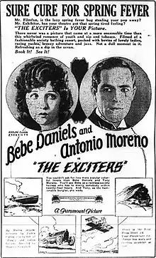 The Exciters is a 1923 American silent romantic comedy film produced by Famous Players-Lasky and distributed through Paramount Pictures. It is based on a 1922 Broadway play of the same name by Martin Brown. This film was directed by Maurice Campbell and stars Bebe Daniels, then a popular Paramount contract star.[1][2] On the Broadway stage, Bebe Daniels's role of Ronnie Rand was played by Tallulah Bankhead.[3]