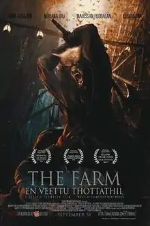 The Farm: En Veettu Thottathil (also known as The Farm: EVT) is a 2017 Malaysian Tamil language dark slasher film.[2] The film is written and directed by Karthik Shamalan.[3][4] The film consist an ensemble cast of Jaya Ganason, Mohanaraj, Mahesan Poobalan, Yugendran Maniam and Haridhass. The film is inspired by popular tale of Red Riding Hood, which gives a dark twist to the story, tells of the painful journey of a girl.