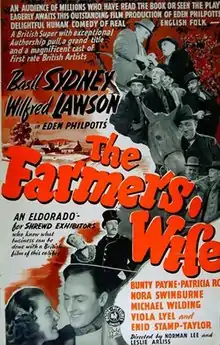 The Farmer's Wife is a 1941 British comedy drama film directed by Norman Lee and Leslie Arliss and starring Basil Sydney, Wilfrid Lawson and Nora Swinburne.[1] It is based on the play The Farmer's Wife by Eden Phillpotts which had previously been adapted by Alfred Hitchcock for a 1928 film of the same name.[2][3] It was produced by ABPC at Welwyn Studios, at a time when the company's main Elstree Studios had been requisitioned for wartime use. The film is not widely known.[4]