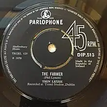 "The Farmer" is the debut single by Irish rock band Thin Lizzy, released on Parlophone in 1970. It is the only recording by the original four-piece line-up of Phil Lynott, Eric Bell, Brian Downey and Eric Wrixon.