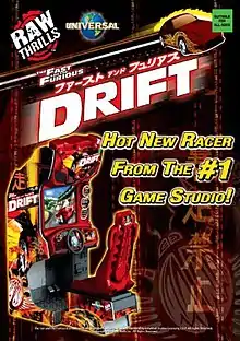 The Fast and the Furious: Drift (stylized as DRIFT) is an arcade racing video game developed and published by Raw Thrills.[1] It is the fifth game based on the Fast and the Furious franchise.[2] This game uses elements from F&F's third film, released a year prior.