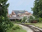 In recent years municipal and state authorities have sought to redevelop the neighborhood as a startup company incubator and cultural center through the creation of the Innovation District and Canalwalk. Proposals have also been put forth for redevelopment of the historic H. H. Richardson train station as well as the Hotel Jess/Perkins Block.[5] While not on the National Register of Historic Places, the latter holds historical significance as it was constructed by Benjamin F. Perkins, a contemporary of Alexander Graham Bell, who had manufactured and demonstrated early telephone equipment personally for the inventor during his visits to Holyoke, and whose eponymous block was the first headquarters of the Springfield Telephone and Automatic Signal Company, a division of the Bell company, and Western Massachusetts' first telephone exchange, established in 1878.[7][8] That same year the building became one of two sites for the world's first public-use toll line, which connected Springfield and Holyoke when it entered service on June 15, 1878.[9]
