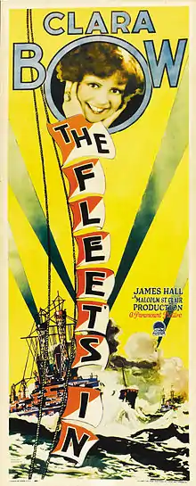 The Fleet's In is a 1928 American silent comedy film directed by Malcolm St. Clair and written by Monte Brice, George Marion Jr., and J. Walter Ruben. The film stars Clara Bow, James Hall, Jack Oakie, Bodil Rosing, Eddie Dunn, and Jean Laverty. The film was released on September 15, 1928, by Paramount Pictures.[1][2]