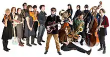 The Flowers of Hell are a transatlantic experimental orchestra made up of a revolving line-up of 16 or so independent musicians based in Toronto and London. Their mostly instrumental sound builds bridges between classical music and post-rock, shoegaze, space rock and drone music, often resulting in their being described as an orchestral extension of the work of The Velvet Underground and Spacemen 3.[1][2] They are led by synesthete composer Greg Jarvis. Much of their repertoire is an exploration of the timbre-to-shape synesthesia that causes Jarvis to involuntarily perceive all sounds as floating abstract visual forms.[3]