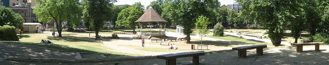 Forbury Gardens is a public park in the town of Reading in the English county of Berkshire. The park is on the site of the outer court of Reading Abbey, which was in front of the Abbey Church. The site was formerly known as the Forbury, and one of the roads flanking the current gardens is still known as The Forbury. Fairs were held on the site three times a year until the 19th century.