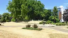 In 2015, a statue was unveiled to the memory of Trooper Fred Potts VC, who was awarded the Victoria Cross in October 1915 after endangering his own life to drag a wounded comrade from the battlefield at the Battle of Scimitar Hill. The statue is just outside the garden wall, facing the Crown Court building. In the same year, the Reading International Brigade Memorial was relocated from the Civic Centre to the east side of the gardens, and rededicated.[10][11]