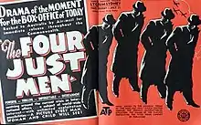 The Four Just Men, also known as The Secret Four, is a 1939 British thriller film directed by Walter Forde and starring Hugh Sinclair, Griffith Jones, Edward Chapman and Frank Lawton.[1] It is based on the 1905 novel The Four Just Men by Edgar Wallace. There was a previous silent film version in 1921.[2] This version was produced by Ealing Studios,[3] with sets designed by Wilfred Shingleton.