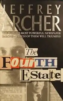 The Fourth Estate is a 1996 novel by Jeffrey Archer. It chronicles the lives of two media barons, Richard Armstrong and Keith Townsend, from their starkly contrasting childhoods to their ultimate battle to build the world's biggest media empire. The book is based on two real life media barons – Robert Maxwell and Rupert Murdoch,[1] who fought to control the newspaper market in Britain. (Murdoch had bought The Sun and News of the World and later Times Newspapers Ltd and Maxwell bought the Daily Mirror and the other newspapers in its group.).
