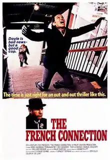 The French Connection is a 1971 American neo-noir[5] action thriller film[6] starring Gene Hackman, Roy Scheider, and Fernando Rey, and directed by William Friedkin. The screenplay, written by Ernest Tidyman, is based on Robin Moore's 1969 book of the same name. It tells the story of fictional NYPD detectives Jimmy "Popeye" Doyle and Buddy "Cloudy" Russo, whose real-life counterparts were Narcotics Detectives Eddie Egan and Sonny Grosso, in pursuit of wealthy French heroin smuggler Alain Charnier (played by Rey).
