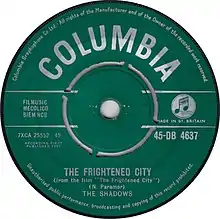 "The Frightened City" is a song by British group the Shadows, released as a single in April 1961. It peaked at number 3 on the UK Singles Chart.[2]