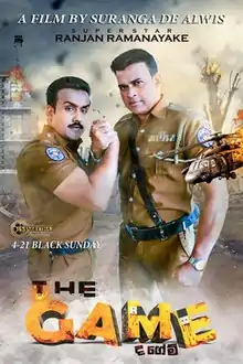 The Game (Sinhala: ද ගේම්) is a 2022 Sri Lankan Sinhala action thriller film directed by Suranga de Alwis and produced by Nishantha Weerasinghe for Sangeetha Films, and distributed by A4Movie.[1] The film stars Ranjan Ramanayake, Sriyantha Mendis and Janith Wickramage in lead roles,[2] whereas Buddhika Jayaratne, Dhananjaya Siriwardena and Wasantha Kumaravila made supportive roles.[3][4] The film revolves around an extremist who started to assassinate a powerful aristocrat, where the theme loosely based on April 21 Easter Sunday Bombings occurred in Sri Lanka.[5]