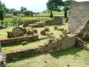 The garden is situated near the Large Palaestra and just inside the Nocera gate. Today it has been extensively and carefully replanted to represent the original contents.[5]