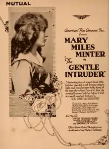 The Gentle Intruder is a 1917 American silent drama film directed by James Kirkwood and starring Mary Miles Minter. The film was Minter's sixth production with Mutual Film.[1] It is one of approximately a dozen of Minter's films known to have survived; a copy is held by the Dutch Filmmuseum.[2]
