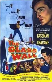 The Glass Wall is a 1953 American drama film noir directed by Maxwell Shane and starring Vittorio Gassman and Gloria Grahame. The black-and-white film was produced and distributed by Columbia Pictures. The title refers to a design feature of the United Nations headquarters in New York City.