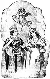 Only weeks before Sullivan began composing The Golden Legend in the spring of 1886, Franz Liszt visited London.[7] Sullivan had met Liszt many years earlier in Leipzig, when Sullivan was a student there,[8] and he now escorted the older composer to functions given in his honour. During this visit, Liszt's music was heard in London, including his sacred cantata, The Legend of St Elisabeth.[9][7] Liszt had, in 1874, set the prologue of The Golden Legend as Die Glocken des Strassburger Münsters, and some commentators assert that the influence of Liszt, and particularly of these two works, is discernible in Sullivan's cantata.[10][11]
