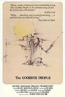 The Goodbye People is a 1984 American comedy-drama film written and directed by Herb Gardner, based on his 1968 play The Goodbye People. The film stars Judd Hirsch, Martin Balsam, Pamela Reed, Vincent Gugleotti, Gene Saks and Ron Silver. First screened at the Toronto International Film Festival in 1984, the film was released on January 31, 1986, by Embassy Pictures (by a fitting coincidence, it would be their final theatrical release before the company was merged into Columbia Pictures).[1][2][3]