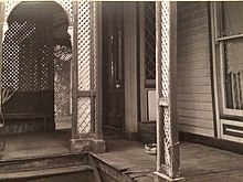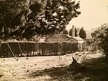 The property was 804 Lydiard Street when it was purchased by Darling, and become number 808 when three houses were built along Lydiard Street from the corner of Gregory Street. An orchard was on the eastern side of the property, but was dilapidated when the Darlings moved in. A Hawthorn hedge ran down the Lydiard Street boundary together with a picket fence, and the laneway access to Gregory Street was lined with Hawthorns. The property boasted huge Cypresses and copses of Laurel trees in very much a non-traditional style, and a tennis court. There was a huge wood heap in the horse paddock to service the house and additional wood was stored on another 32 acre block which Darling owned in nearby Doveton Street North, Ballarat North. At this time there was a horse paddock which ran the length of the property, from Gregory street to Howiitt street, which was later used for his draught horses. These horses worked at the Ballarat Railway yards pulling and moving rolling stock.[54]