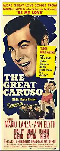 The Great Caruso is a 1951 biographical film produced by Metro-Goldwyn-Mayer and starring Mario Lanza as famous operatic tenor Enrico Caruso. The movie was directed by Richard Thorpe and produced by Joe Pasternak with Jesse L. Lasky as associate producer. The screenplay, by Sonya Levien and William Ludwig, was suggested by the biography Enrico Caruso His Life and Death by Dorothy Caruso, the tenor's widow. The original music was composed and arranged by Johnny Green and the cinematography by Joseph Ruttenberg. Costume design was by Helen Rose and Gile Steele.