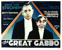 The Great Gabbo is a 1929 American Pre-Code early sound musical drama film directed by James Cruze, based on Ben Hecht's 1928 short story "The Rival Dummy", and starring Erich von Stroheim and Betty Compson.[1] The film features songs by Lynn Cowan, Paul Titsworth, Donald McNamee and King Zany.