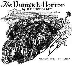 The Great God Pan was highly influential on the circle of writers around H. P. Lovecraft.[8] The structure of Machen's story influenced the structure of Lovecraft's "The Call of Cthulhu" (1928).[47] Pan's depiction of a monstrous half-human hybrid inspired the plot of Lovecraft's "The Dunwich Horror" (1929), which refers to Machen's novella by name. According to Lovecraft scholar Robert M. Price, "'The Dunwich Horror' is in every sense an homage to Machen and even a pastiche. There is little in Lovecraft's wonderful story that does not come directly out of Machen's fiction."[46] Pan also inspired Lovecraft to create his character Nodens[2] who appears most prominently in The Dream-Quest of Unknown Kadath (1943).[48]
