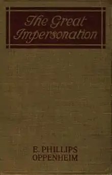 The Great Impersonation is a mystery novel written by E. Phillips Oppenheim and published in 1920. German Leopold von Ragastein meets his doppelganger, Englishman Everard Dominey, in Africa, and plans to murder him and steal his identity to spy on English high society just prior to World War I. However, doubts of the returned Dominey's true identity begin to arise in this tale of romance, political intrigue, and a (literally) haunting past.
