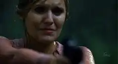 ![]() Shannon holds Locke at gunpoint. | |
