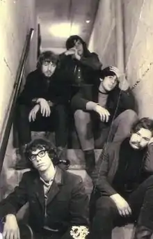 The Hangmen were founded in 1964 by bassist Mike West and rhythm guitarist George Daly at Montgomery Junior College in Rockville, Maryland.[1][2][3] In 1965 they recruited fellow Montgomery students guitarist Tom Guernsey and drummer Bob Berberich previously from a band called the Reekers, who were on indefinite hold after two members Joe Triplett and Mike Henley departed for college. [1][2][3] Guernsey, who had been the Reekers' leader and principal songwriter, was reluctant at first to leave his former band for The Hangmen, but later changed his mind and joined. [1][3] The Hangmen now needed a vocalist and, wishing to project an image that would be in line with the British Invasion, guitarist George Daly contacted the British Embassy asking for a British singer.[1][2] He was first referred to a female vocalist, but she, in turn, introduced the group to Dave Ottley, a hairdresser for Vincent Hair Stylists, who had been in the United States for two years. [1][2] Ottley was from Glasgow, Scotland, though some newspaper articles covering the band at the time suggested that he was from Liverpool, a town popularly noted for its being the hometown of The Beatles. [1] The first news story about the band appeared in the Washington Evening Star on April 3, 1965 mentioning their appearance in a battle of the bands at the Shirlington Shopping Center in which they lost to the local band the Shadows.[1] In
