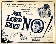 The Happy Family is a 1952 British comedy film directed by Muriel Box and starring Stanley Holloway, Kathleen Harrison and Naunton Wayne.[1] The plot of the film centres on resistance by a family to the disruption caused by the construction of the Festival of Britain. It is also known in the U.S. by the alternative title Mr. Lord Says No. It was an adaptation of a play The Happy Family by Michael Clayton Hutton.[2]