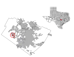 The Hills is located at 30°20′49″N 97°58′52″W (30.346938, –97.981187),[4] 16 miles (26 km) west of downtown Austin.