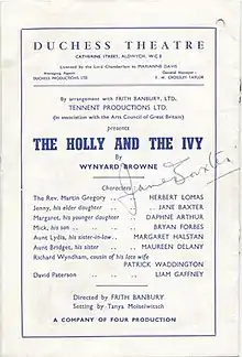 The Holly and the Ivy is a 1950 play by the British writer Wynyard Browne. A vicar attempts to deal with the various problems of his family as they gather for the Christmas period.