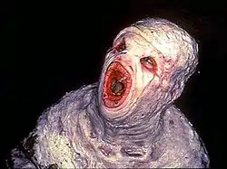 ![]() The Flukeman as seen in the final stages of the episode. Many critics praised the creepiness of the villain. | |