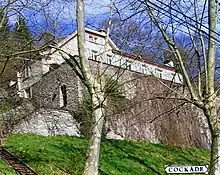 Much of the novel is an accurate account of the building of Cockade, the writer's own residence that he completed in 1939, a little way out of Eaux-Bonnes, south of Pau.[5] It was a substantial six-bedroom property, called Cockade because of the way in which it projected from the hill as does a hackle from a hat.[6]