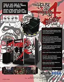 The House of the Dead 4[lower-alpha 1] is a horror-themed light gun shooter arcade game and the fourth installment of the House of the Dead video game series, developed by Sega. The game takes place between the events of The House of the Dead 2 and The House of the Dead III, and introduced several new gameplay concepts. Players can control characters James Taylor, from The House of the Dead 2 (on the left side), or Kate Green, a new character to the series (on the right side). The game was followed by House of the Dead: Scarlet Dawn.